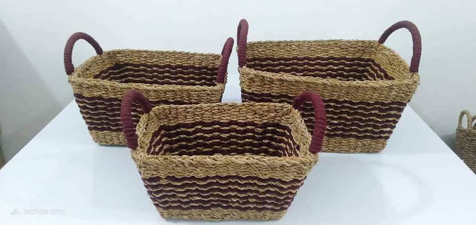 การออกแบบล่าสุดร้อนขายเป็นมิตรกับสิ่งแวดล้อมหญ้าทะเลตะกร้าสินค้าใหม่100% วัสดุธรรมชาติหญ้าทะเลตะกร้าราคาต่ำ