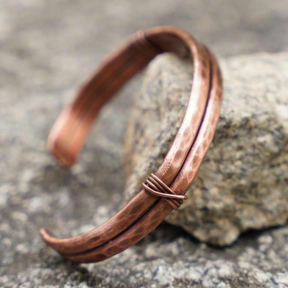 Artisan กำไลข้อมือทองแดงตอกที่ไม่ซ้ำกันออกแบบห่อบรรเทาอาการปวดข้อสมดุลพลังงานป้องกันความเมื่อยล้าสนับสนุนสำหรับผู้ชายผู้หญิง