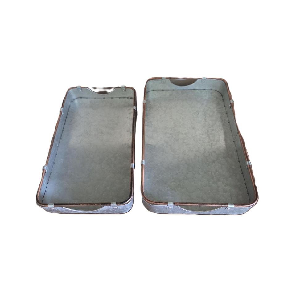 ถาดเสิร์ฟเหล็กชุบสังกะสีดีไซน์ล่าสุด พร้อมหูจับ ตกแต่งสีเงินโบราณ สำหรับใช้ในบ้านและโรงแรม