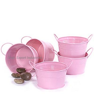 ถังเหล็กทรงกลมพร้อมที่จับเครื่องปลูกดอกไม้สีชมพูตกแต่งในร่มและกลางแจ้งดีไซน์ล่าสุด