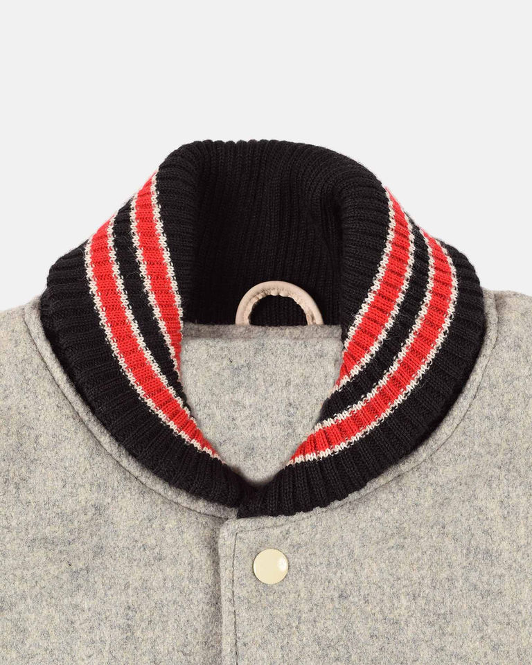 แจ็คเก็ตบอมเบอร์แบบวาร์ซิตี้ ดีไซน์ล่าสุด หนังผสมผ้าแคนวาส คอตั้ง กันน้ำ ระบายอากาศได้ดี รุ่นปี 2026 สำหรับโรงเรียน วิทยาลัย มหาวิทยาลัย