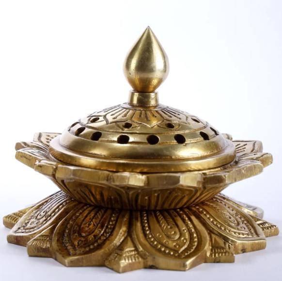 กระถางธูปทองเหลืองทรงดอกบัวสำหรับใช้ในบ้านและในการตกแต่งศาสนา