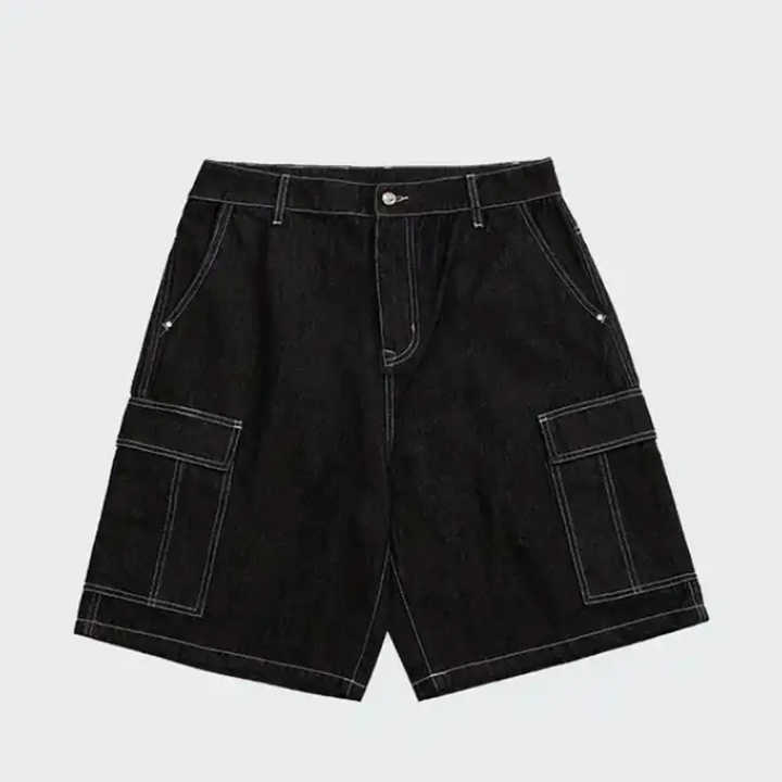 กางเกงยีนส์ขาสั้นปักลายดีไซน์ล่าสุด MOQ ต่ำ / กางเกงยีนส์ขาสั้นผ้าฝ้ายผู้ชายสไตล์วินเทจสตรีทแวร์ฤดูร้อนแบบสั่งทำได้