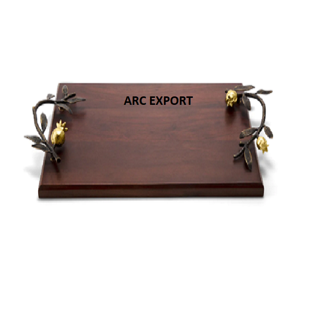 ถาดสำหรับตกแต่งอาหารสีน้ำตาลหรูหราพร้อมด้ามจับสีทองสำหรับห้องครัวถาดเสิร์ฟอาหารดีไซน์ล่าสุด