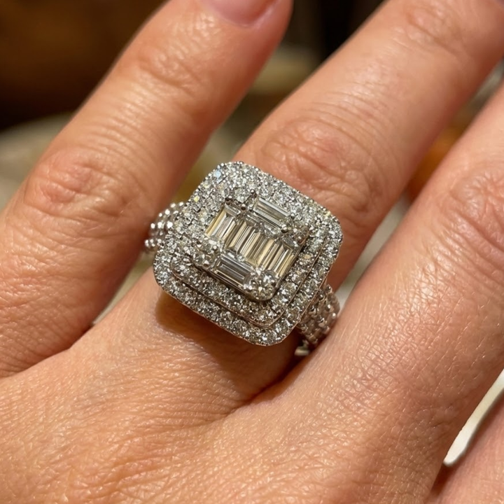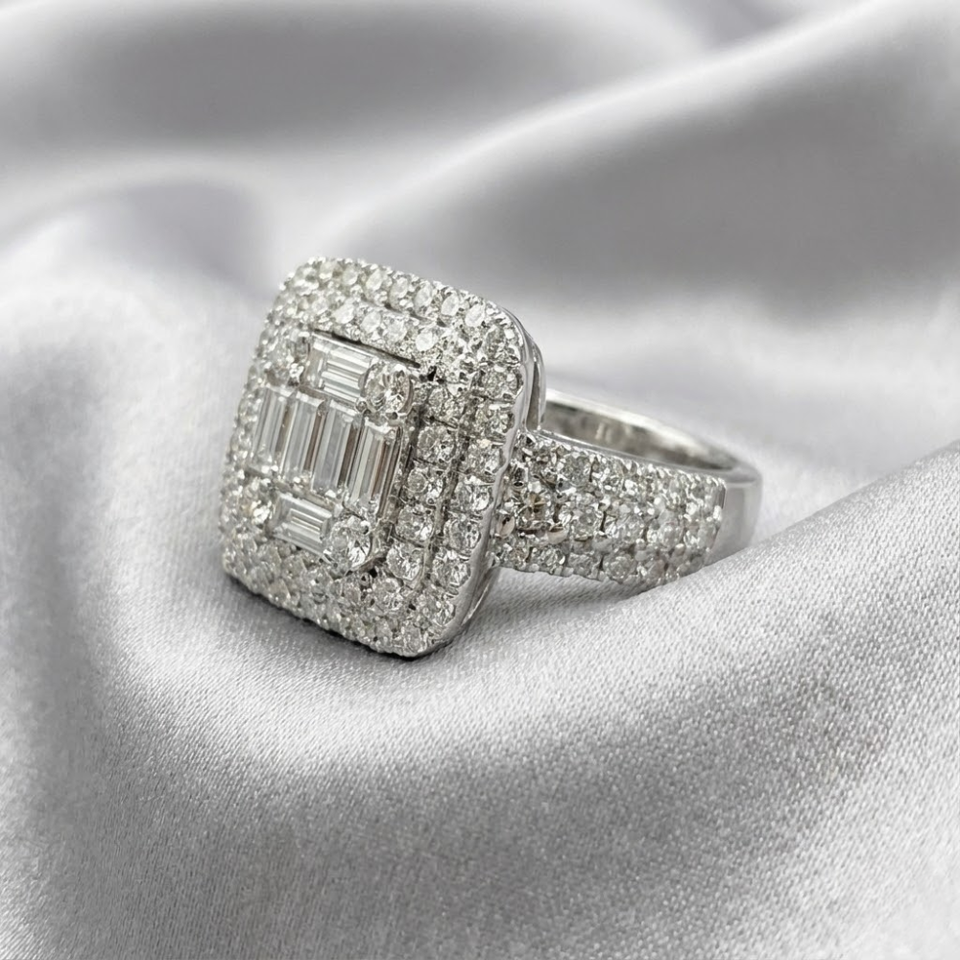 18k diamond baguette cluster ring