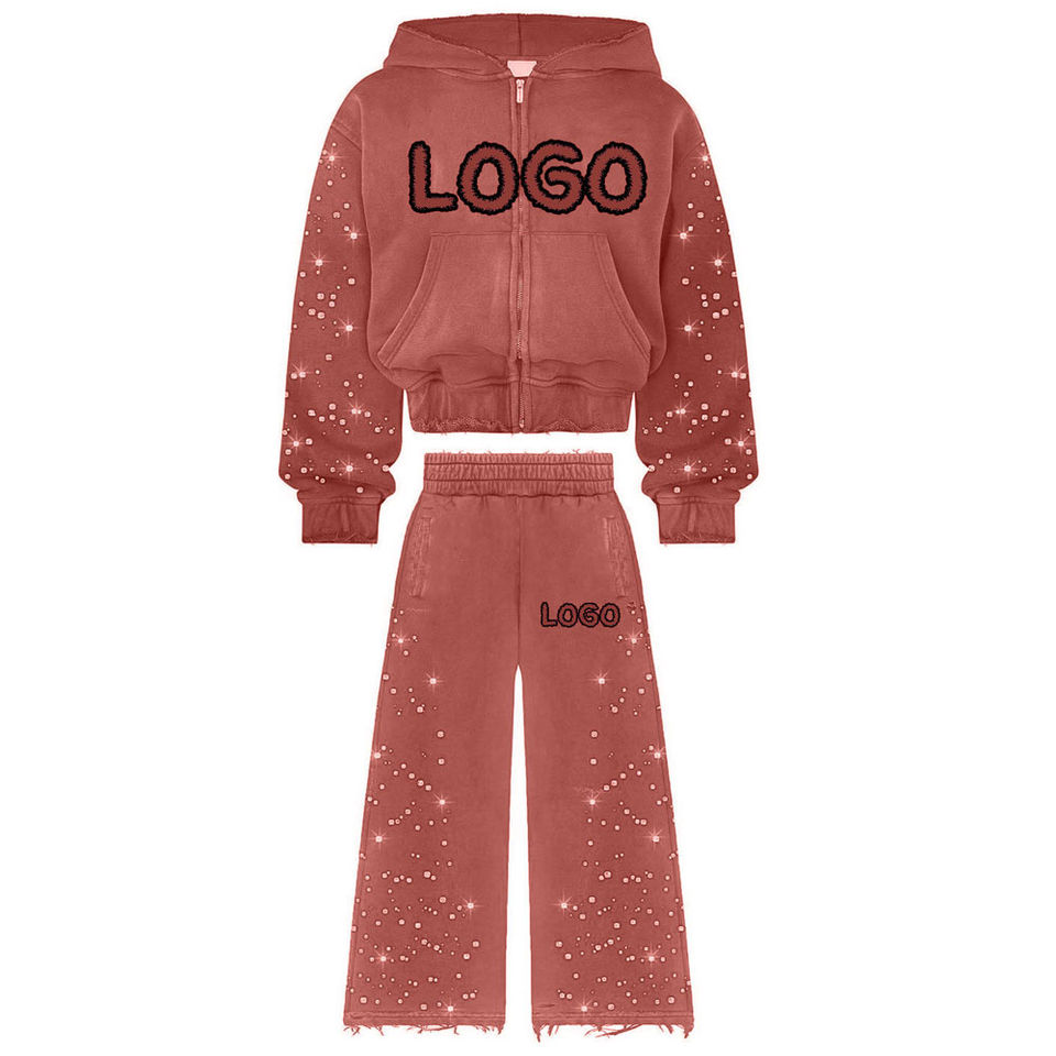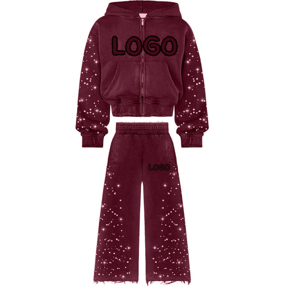ชุดวอร์มผู้หญิงดีไซน์ล่าสุด Maanify 2026 ประดับด้วยกลิตเตอร์และคริสตัล ลายพิมพ์ดิจิทัลลายดอกไม้