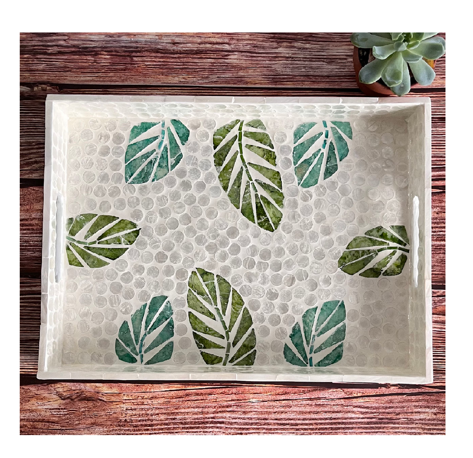 ถาดเก็บของลายใบไม้ ดีไซน์ล่าสุด ผลิตจากเปลือกหอยมุกคุณภาพสูง ชุด 2 ชิ้น
