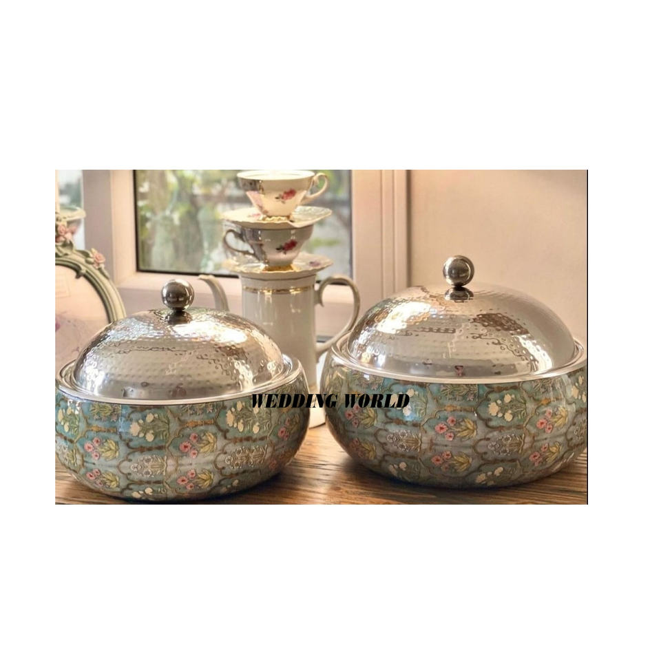 ชุดอุ่นอาหารโลหะดีไซน์ใหม่ล่าสุดหม้อปรุงอาหารแฮนด์เมด2ชิ้นดีไซน์เนอร์เครื่องครัวโลหะหรูหราดีไซน์