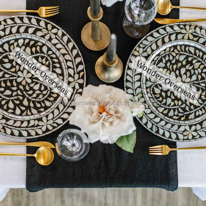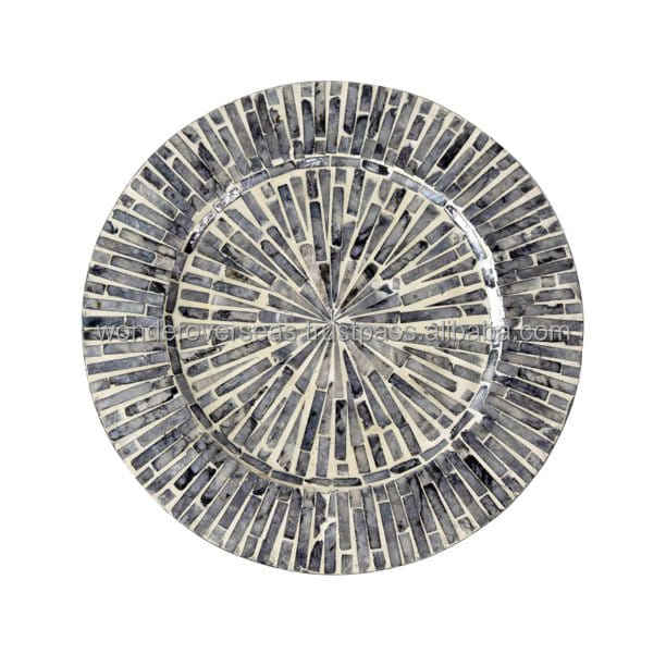 จานโลหะและแม่ของมุกที่ชาร์จ/โชว์จานสำหรับร้านอาหารและงานแต่งงานการตกแต่งในต่างประเทศดีไซน์ล่าสุด