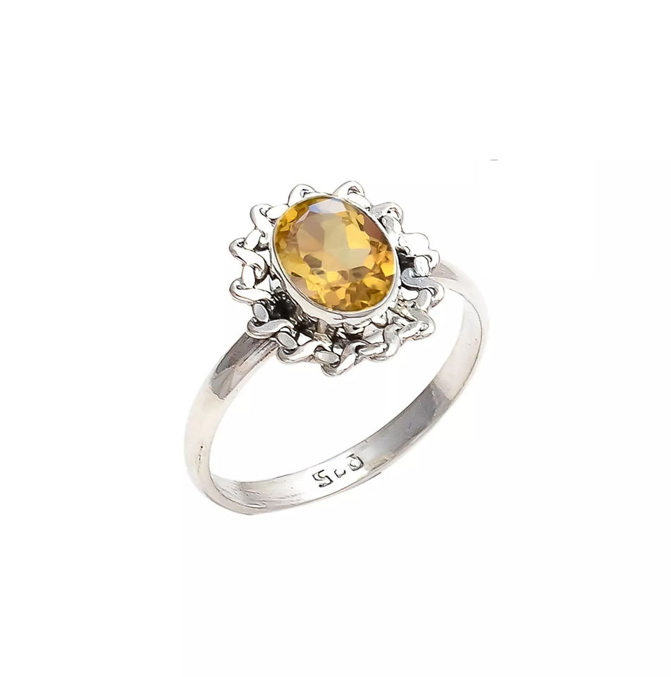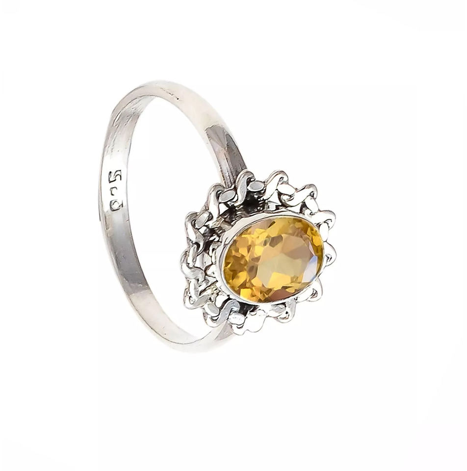 แหวนมินิมอลลิสต์โบฮีเมียนสีเงินสเตอร์ลิง925 6x8มม. ทำด้วยมือพลอยซิทรีนรูปไข่สำหรับงานแต่งงานของผู้หญิงดีไซน์ล่าสุด