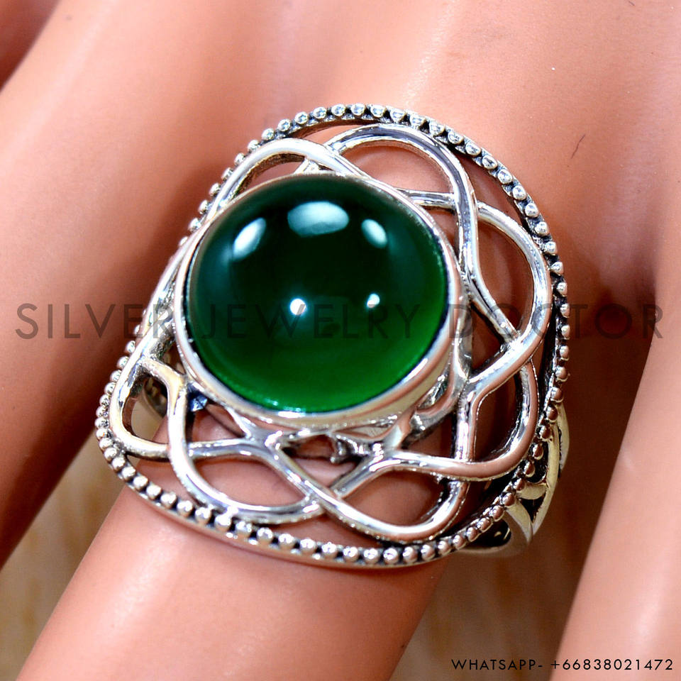 แหวนเงินแท้ 925 ประดับพลอยออนิกซ์สีเขียวธรรมชาติ ดีไซน์ล่าสุด งานแฮนด์เมด สำหรับผู้หญิง ขายส่ง