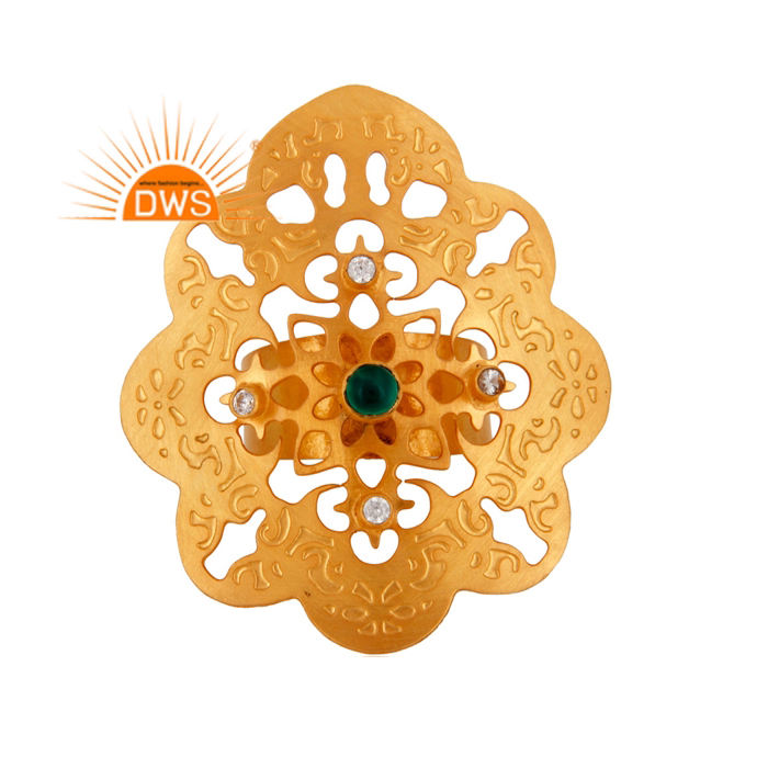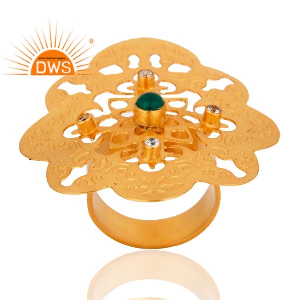 การออกแบบล่าสุดธรรมชาติสีเขียวนิลและ CZ พลอยแหวนงบสำหรับผู้หญิงผู้ผลิตเครื่องประดับ
