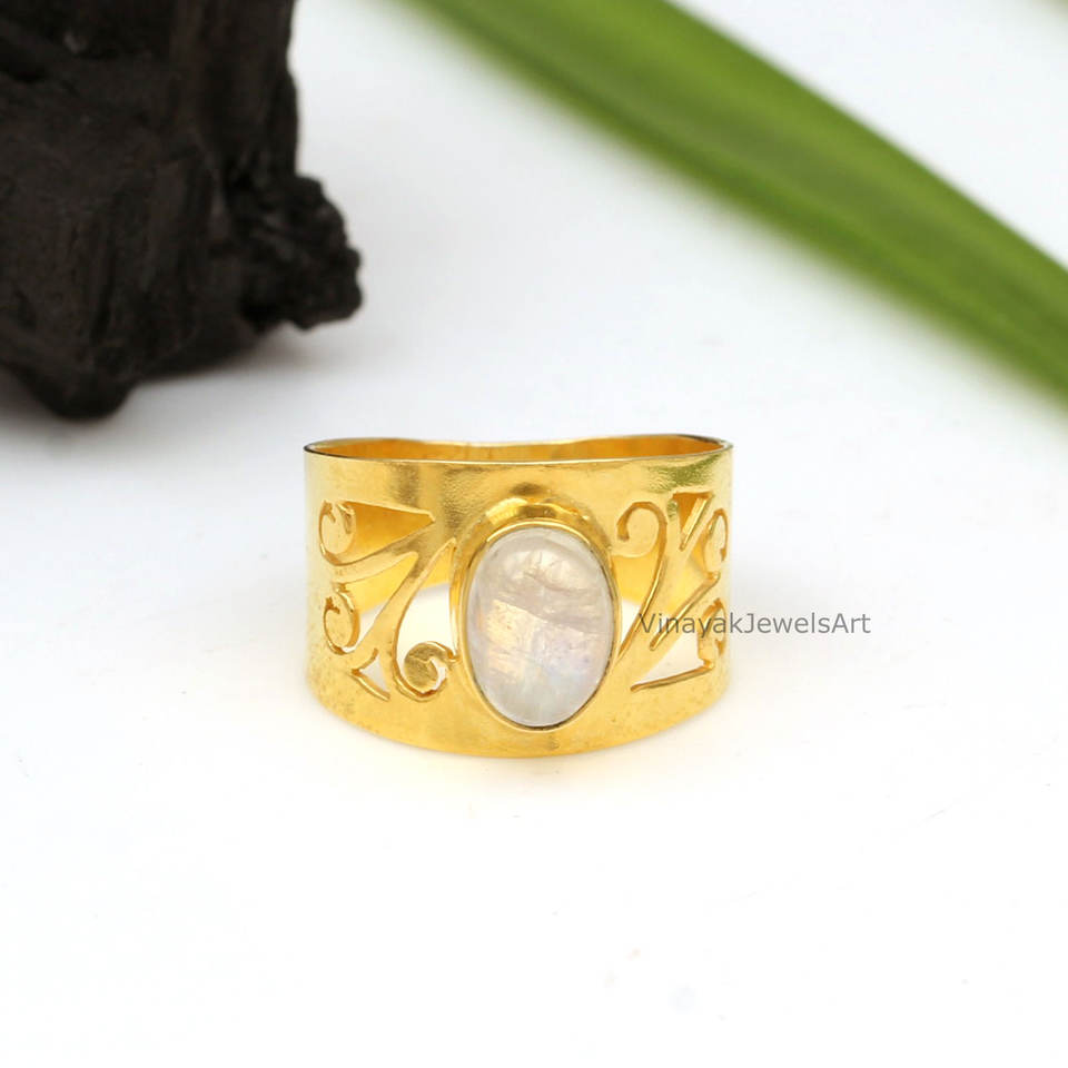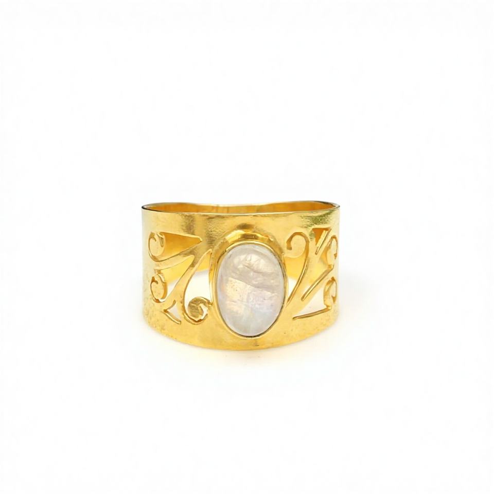 มูนสโตนสายรุ้งสีขาวธรรมชาติ925เงินสเตอร์ลิง6x8มม. รูปไข่นิรันดร์อัญมณีโบฮีเมียนชุบทอง
