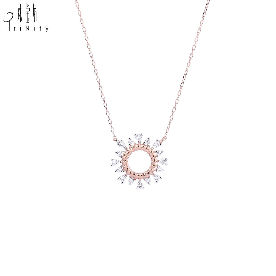 ชื่อผลิตภัณฑ์:สร้อยคอวงกลมประดับเพชรแท้18K สีโรสโกลด์