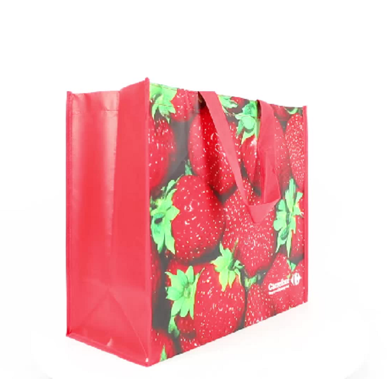 การออกแบบล่าสุดงานศิลปะการพิมพ์ใหม่และโพรพิลีนที่มีคุณภาพดีทอถุงช้อปปิ้งร้านขายของชำในสีเขียวสีเหลืองสีแดง