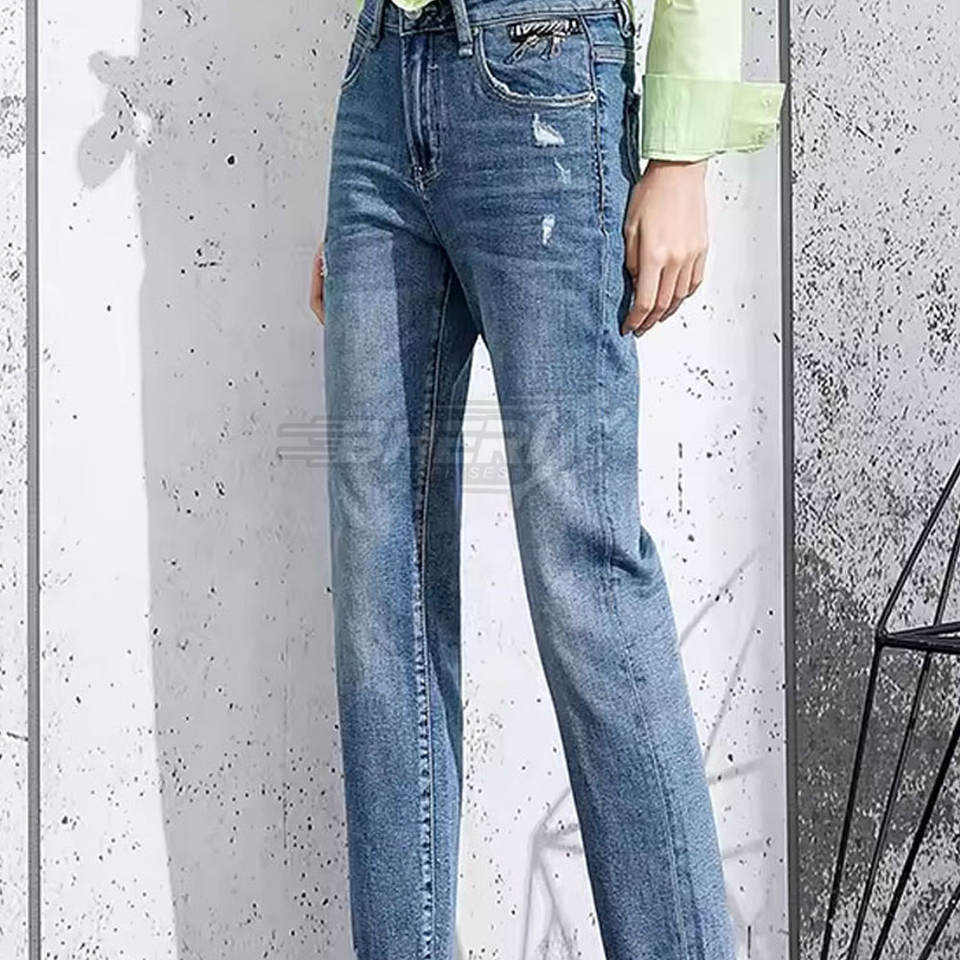 กางเกงยีนส์แฟชั่นสำหรับผู้หญิงกางเกงผ้าแคนวาสแบบกึ่งเรียบด้านหน้าสำหรับ100% ผ้าแคนวาสสำหรับผู้หญิงดีไซน์ล่าสุด