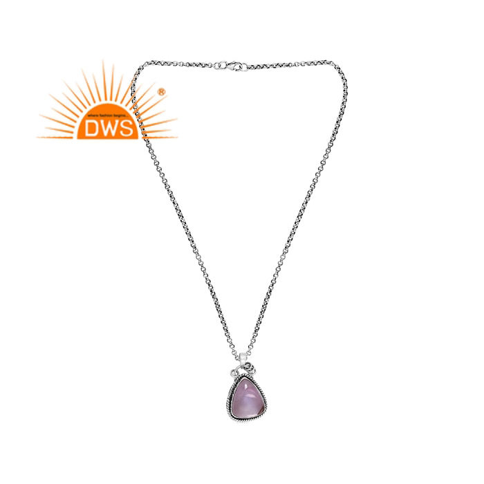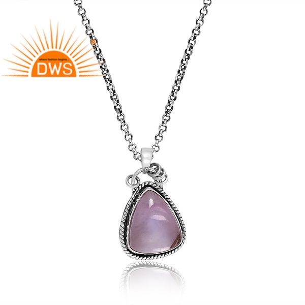 สร้อยคอจี้อัญมณีสีชมพูอเมทิสต์สีเงินสเตอร์ลิงออกซิไดซ์ออกแบบล่าสุดเครื่องประดับสำหรับผู้หญิงของขวัญสำหรับผู้หญิงสำหรับเธอ