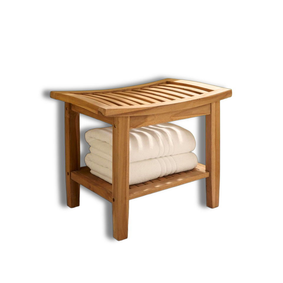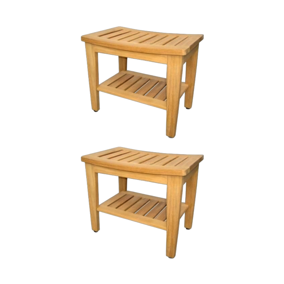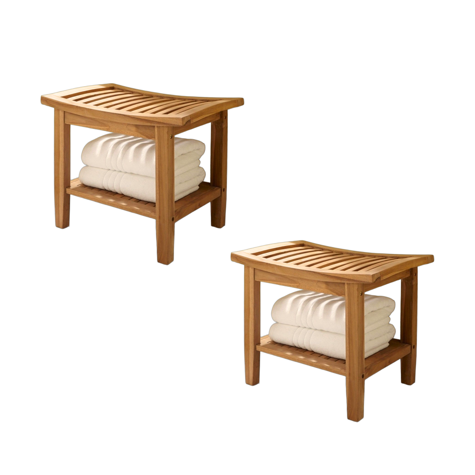 Latest Design Premium Quality Custom Order Minimalist Eco-Friendly & Durable Bathroom Shower Stool 2 Shelves Wooden Accessories