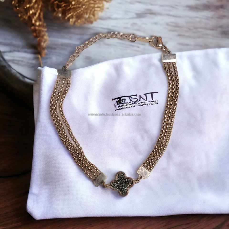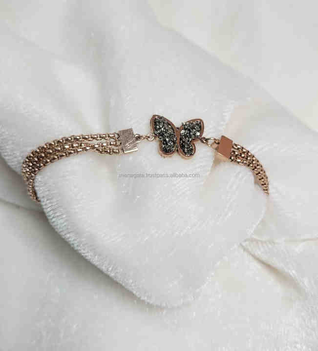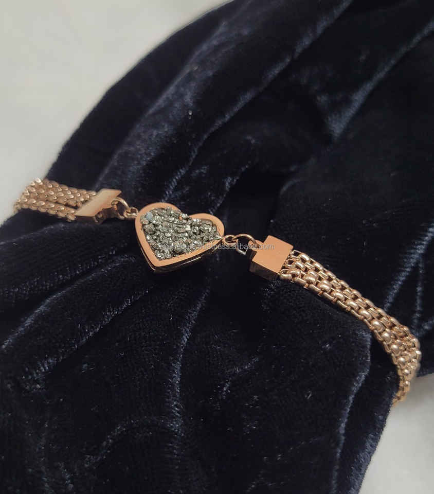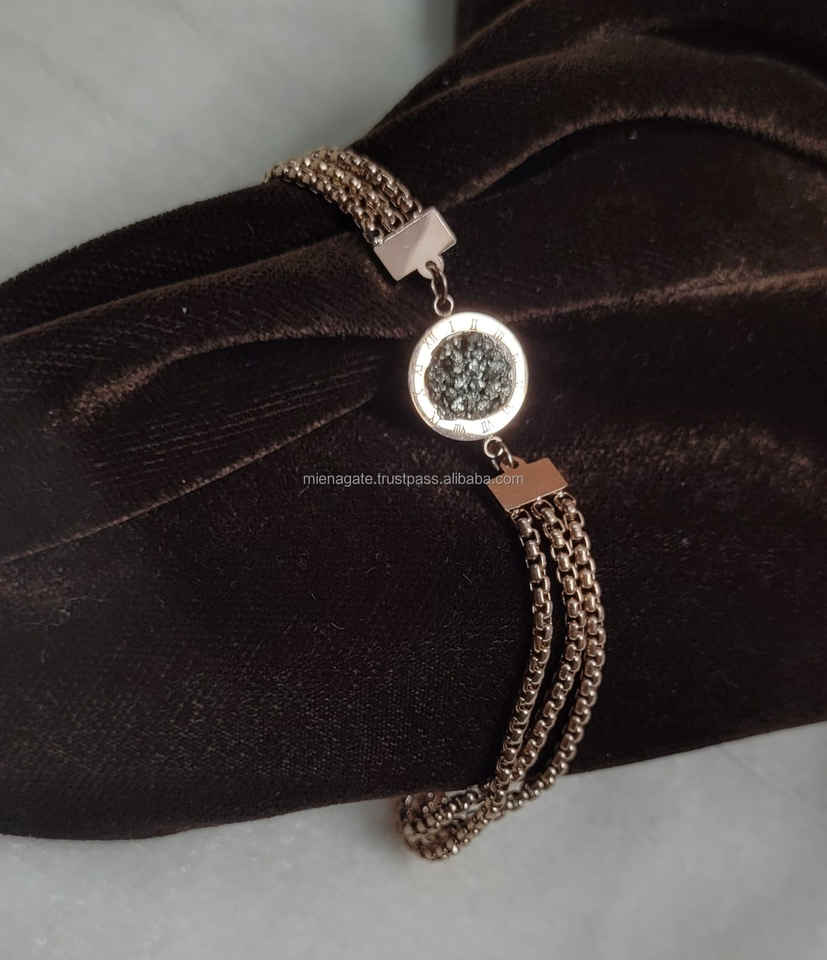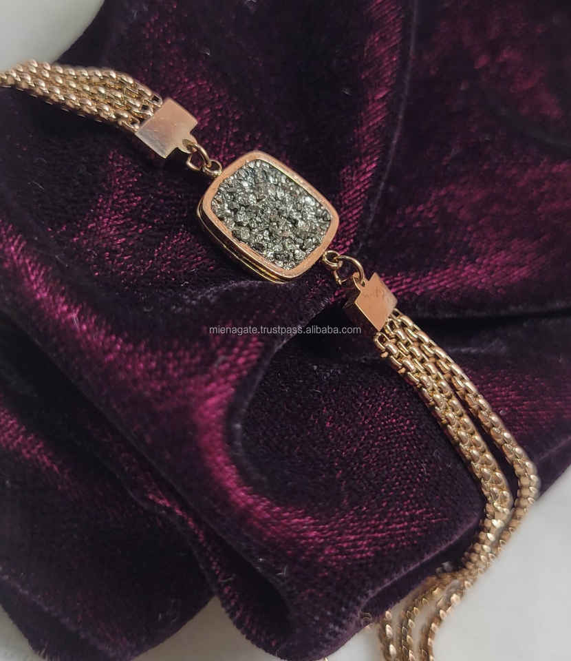 สร้อยข้อมือไพไรต์ชุบด้วยไฟฟ้าทำจากสแตนเลสสำหรับผู้ชายผู้หญิงพลอยรักดีไซน์ล่าสุด