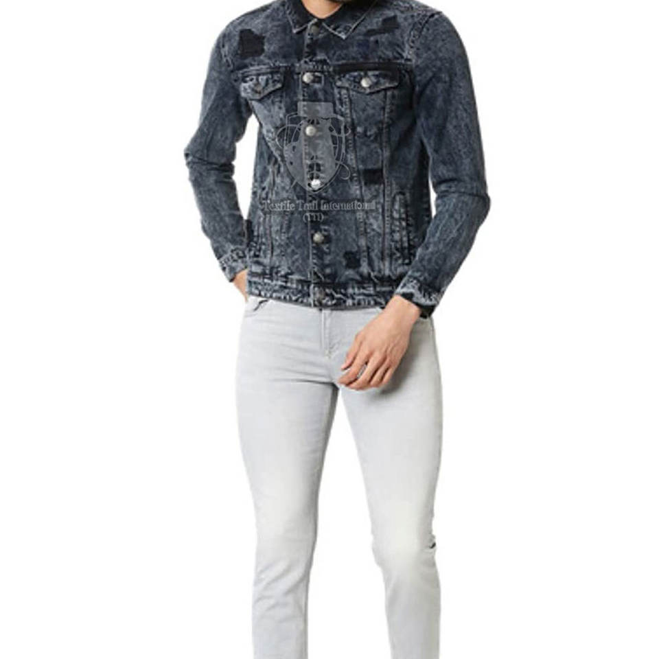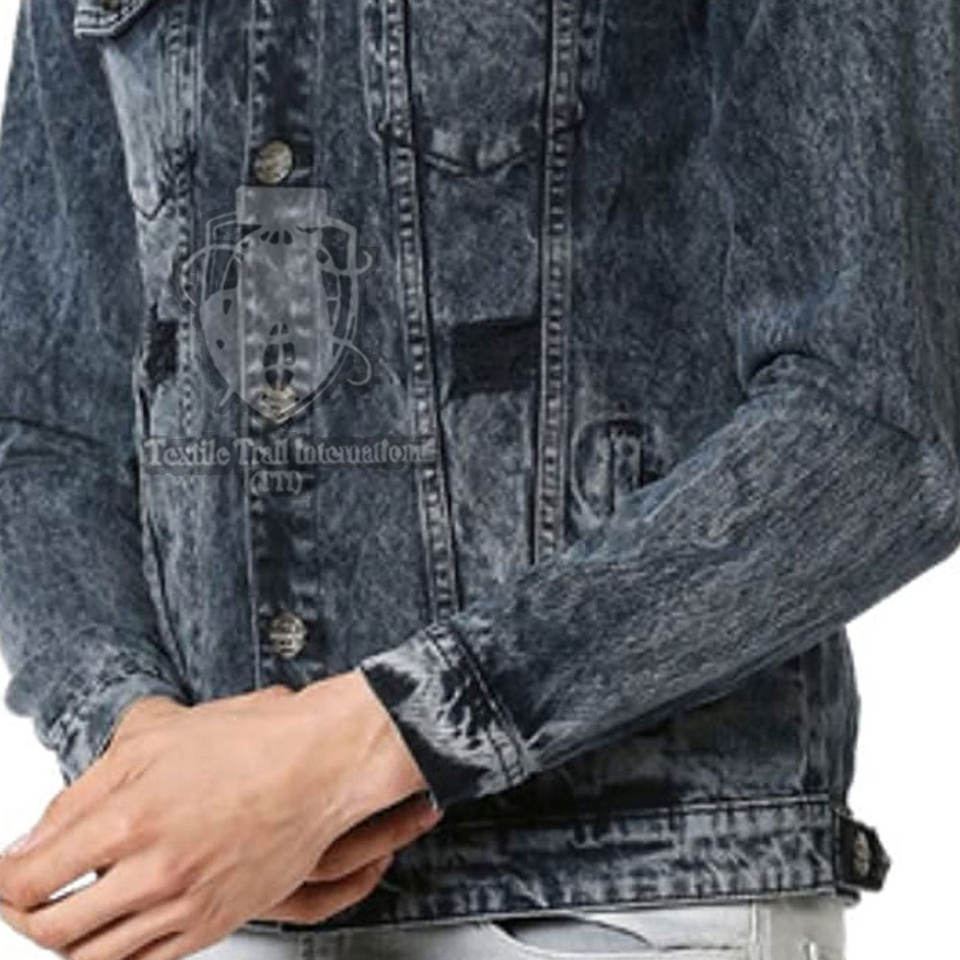 แจ็คเก็ตยีนส์ผ้าแคนวาสสำหรับผู้ชาย ดีไซน์ล่าสุด ราคาสมเหตุสมผล บริการ OEM พร้อมโลโก้ด้านหน้า