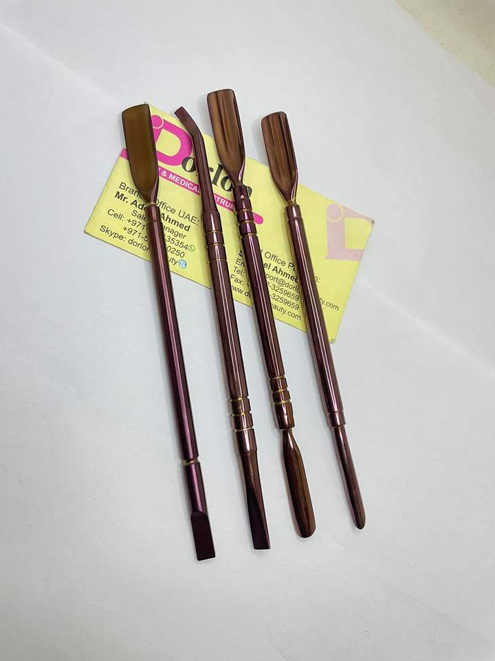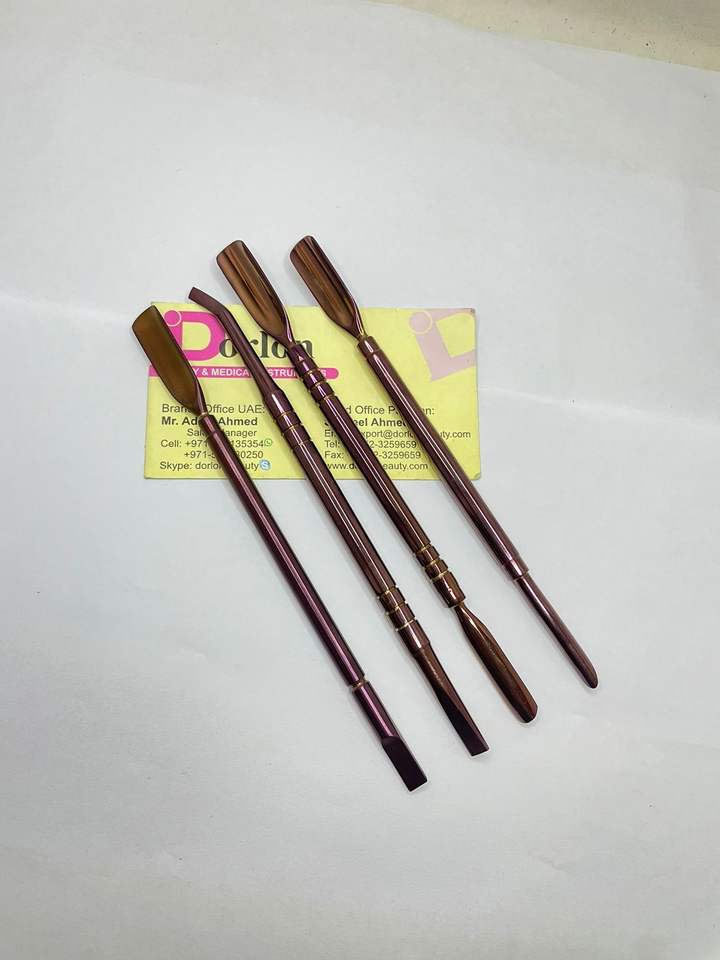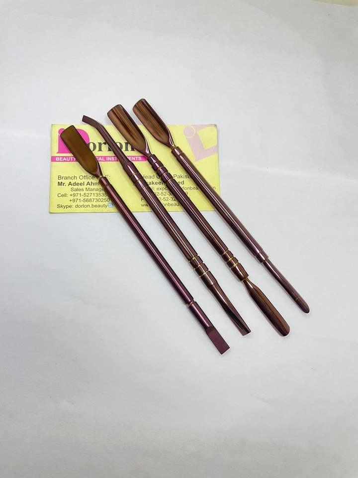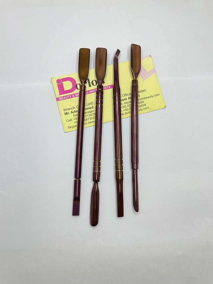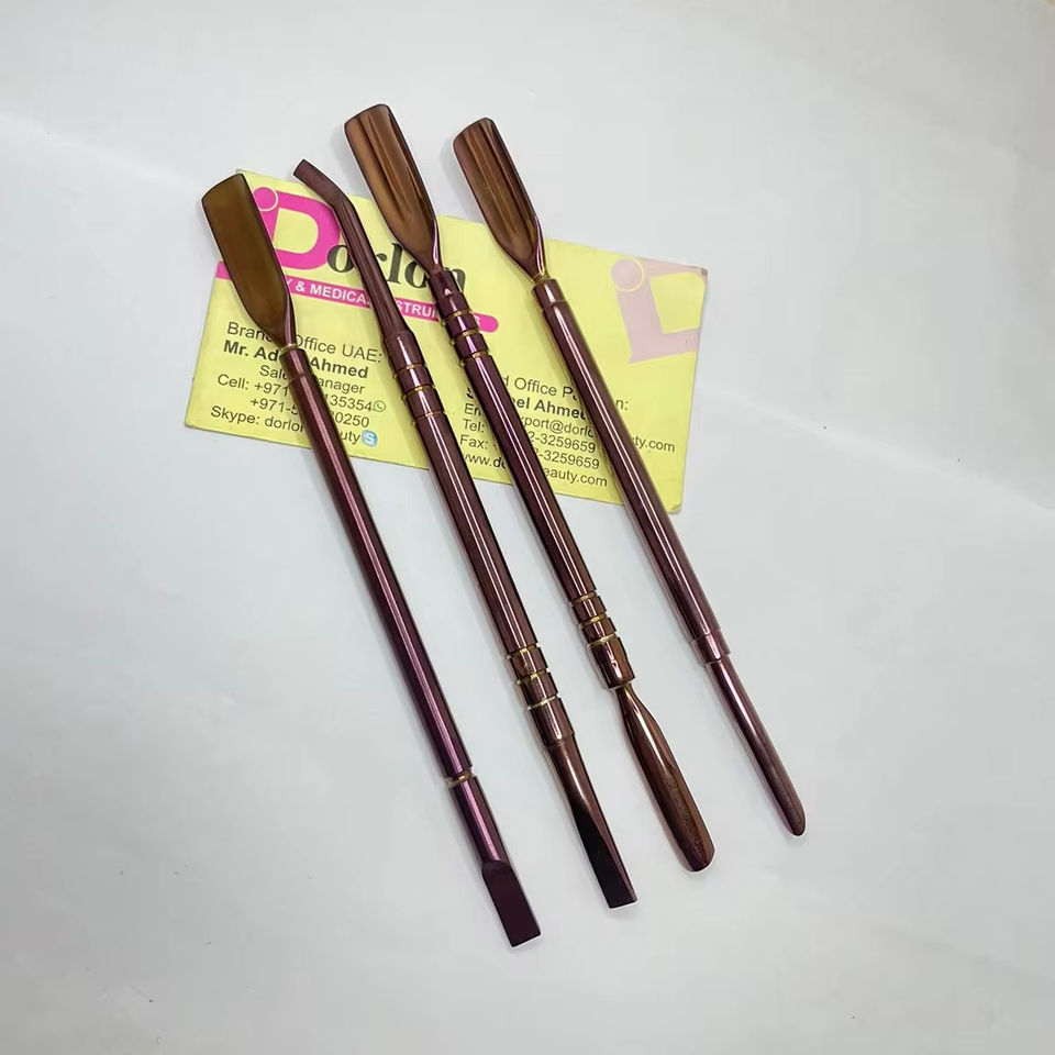 ที่ดันหนังดันหนังกำพร้าสแตนเลสสตีลเครื่องมือดูแลเล็บแบบยั่งยืนเครื่องมือกำจัดหนังกำพร้าแบบสองชั้นดีไซน์ล่าสุด