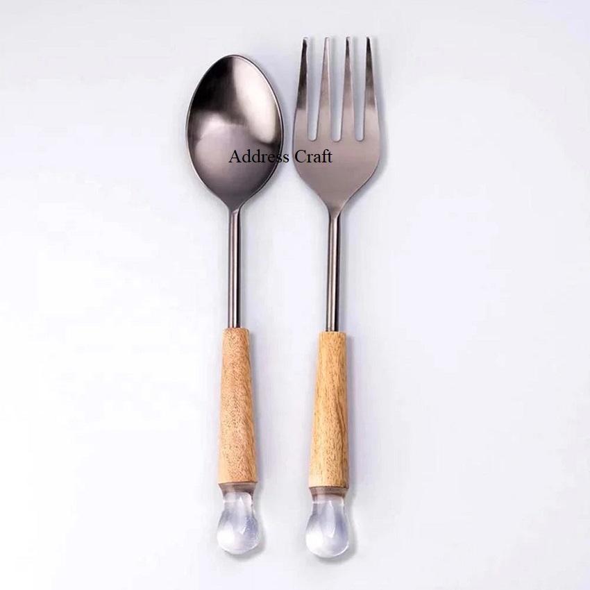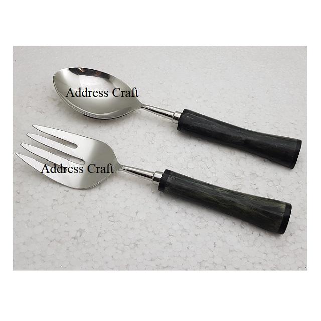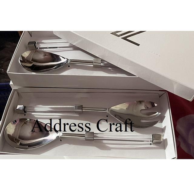 ชุดช้อนตักสลัดทำจากเหล็กเคลือบเงาพร้อมที่จับทำจากอะคริลิคใช้ในห้องครัวอุปกรณ์อัจฉริยะมีด้ามจับทำสลัด