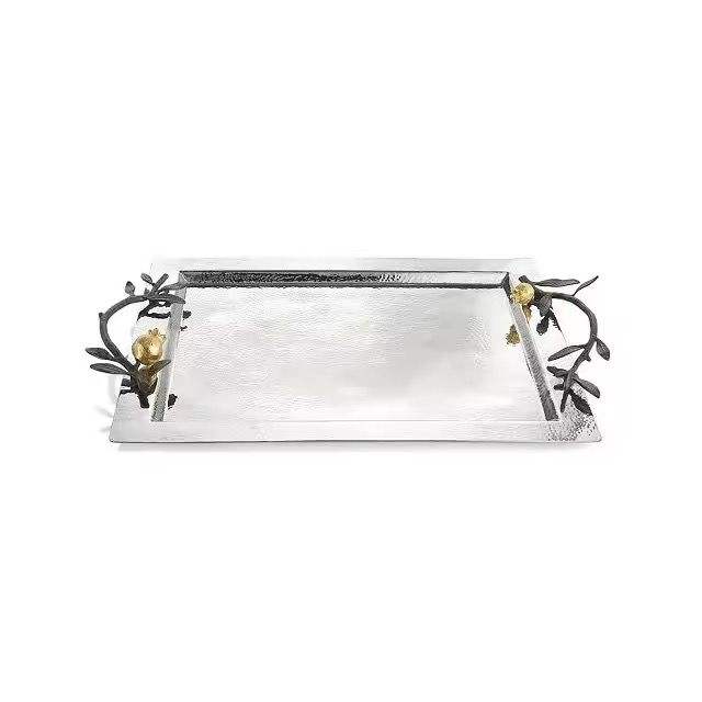 ถาดเสิร์ฟบนโต๊ะอาหารอะลูมิเนียมโลหะชุบเงินดีไซน์ล่าสุด