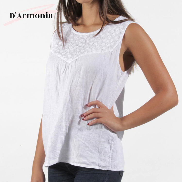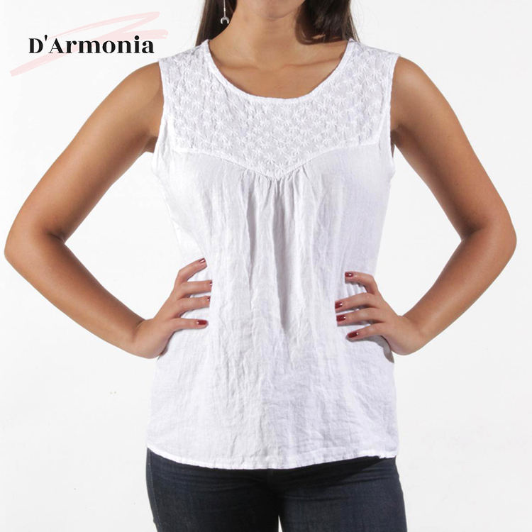 เสื้อเบลาส์ผู้หญิงสีขาวแบบเรียบง่าย แขนกุด สไตล์ลำลอง สำหรับฤดูร้อน ดีไซน์ล่าสุด