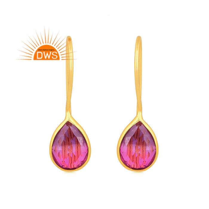ต่างหูควอตซ์ชุบทอง18K แบบคู่ทำจากเงินแท้ดีไซน์ล่าสุดสำหรับผู้ผลิตเครื่องประดับ