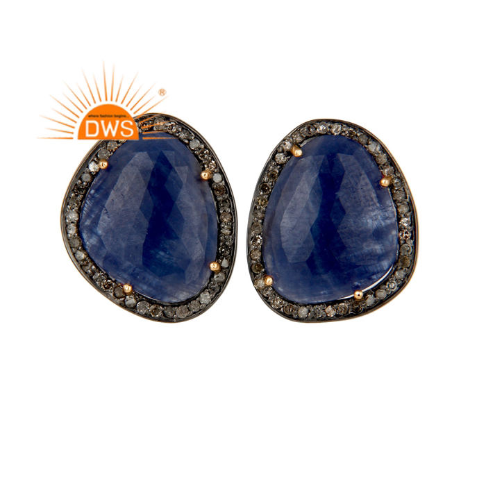 ต่างหูเม็ดเดี่ยวสีเงินแท้18K ชุบทองธรรมชาติและแซฟไฟร์สีน้ำเงินเครื่องประดับอัญมณีดีมีคุณภาพดีสำหรับเป็นของขวัญสำหรับผู้หญิง