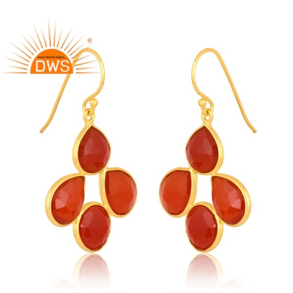ต่างหูห้อยประดับพลอยออนิกซ์สีแดงธรรมชาติ ชุบทองคำ 18K เงินแท้ ดีไซน์ทันสมัยจากผู้ผลิตเครื่องประดับคุณภาพ