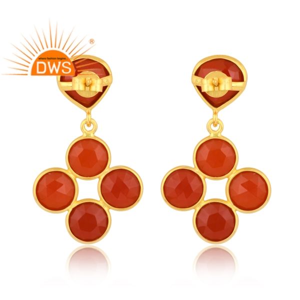 ต่างหูอัญมณีโอนิกซ์สีแดงธรรมชาติชุบทอง18K ดีไซน์ล่าสุดต่างหูห้อยอัญมณี