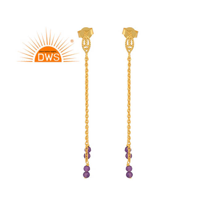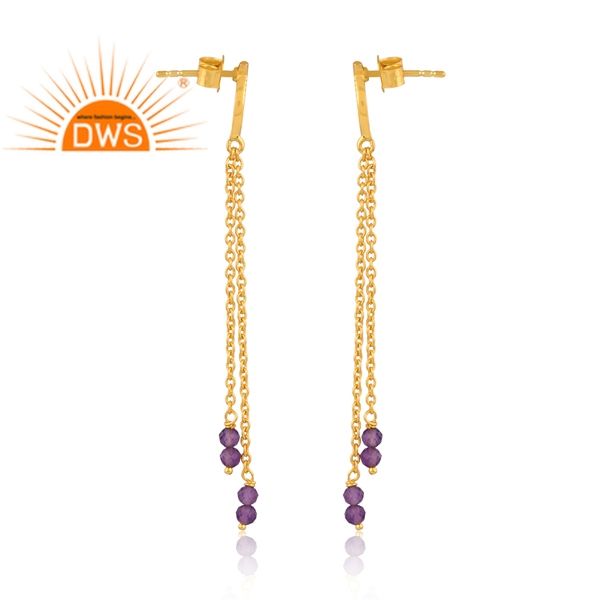 ต่างหูลูกปัดอเมทิสต์ชุบทอง18K ดีไซน์ล่าสุดเครื่องประดับอัญมณี