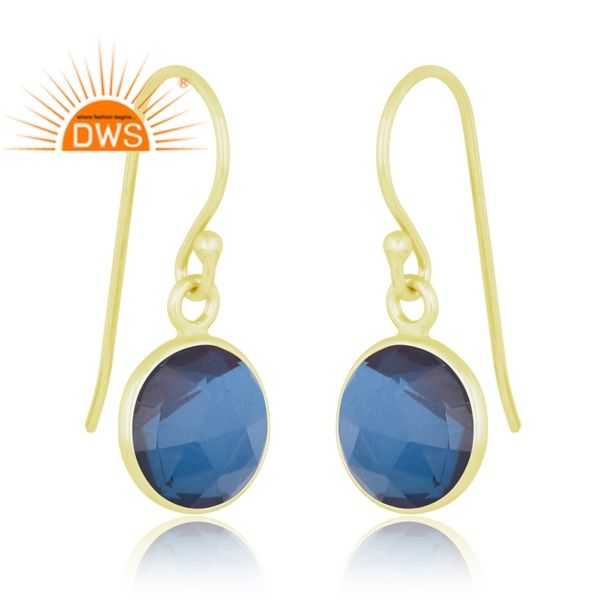 ต่างหูอัญมณีคอรันดัมสีฟ้าเงินสเตอร์ลิงดีไซน์ล่าสุด