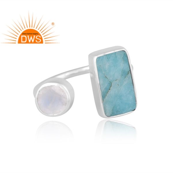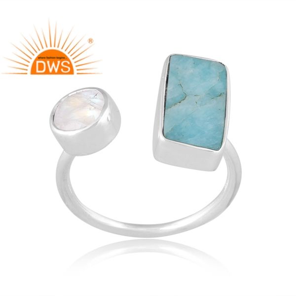 แหวนพลอยอะมาโซไนท์ธรรมชาติสีเงินสเตอร์ลิงและพระจันทร์สีรุ้งเครื่องประดับออกแบบได้ตามต้องการเป็นของขวัญสำหรับผู้หญิง