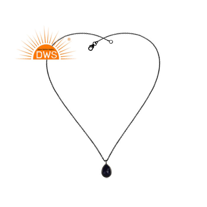 สร้อยคอจี้อัญมณีธรรมชาติสีฟ้าคอรันดัมดีไซน์ล่าสุดผู้ผลิตเครื่องประดับตามสั่ง