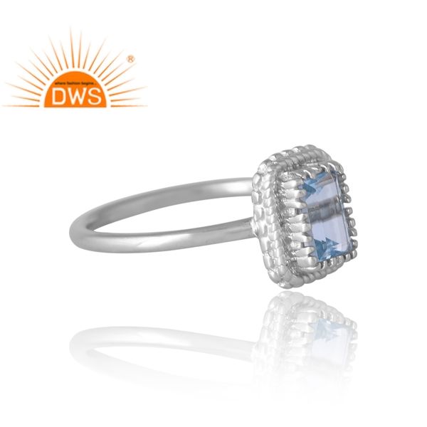 แหวนพลอยบุษราคัมชุบเงินแพลเลเดียมสีฟ้าธรรมชาติออกแบบได้ตามต้องการเครื่องประดับสำหรับผู้หญิงของขวัญสำหรับผู้หญิง