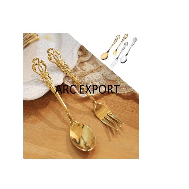 Latest Design Tableware Spoon and Fork Gold Polished Metal Flatware Set for Wedding and Events Parties Table Top Cutlery Sets