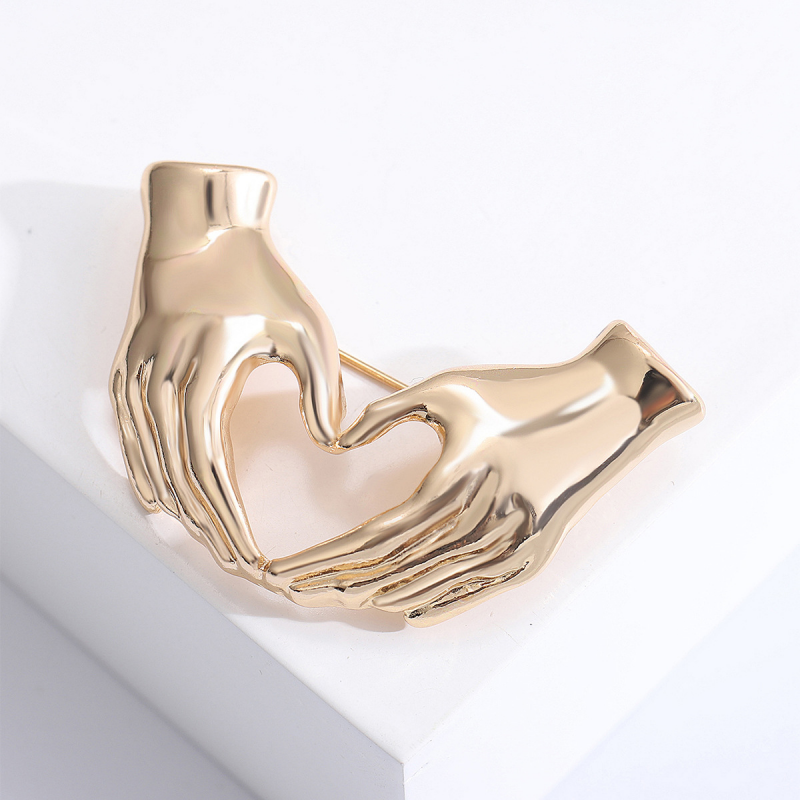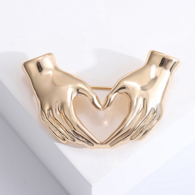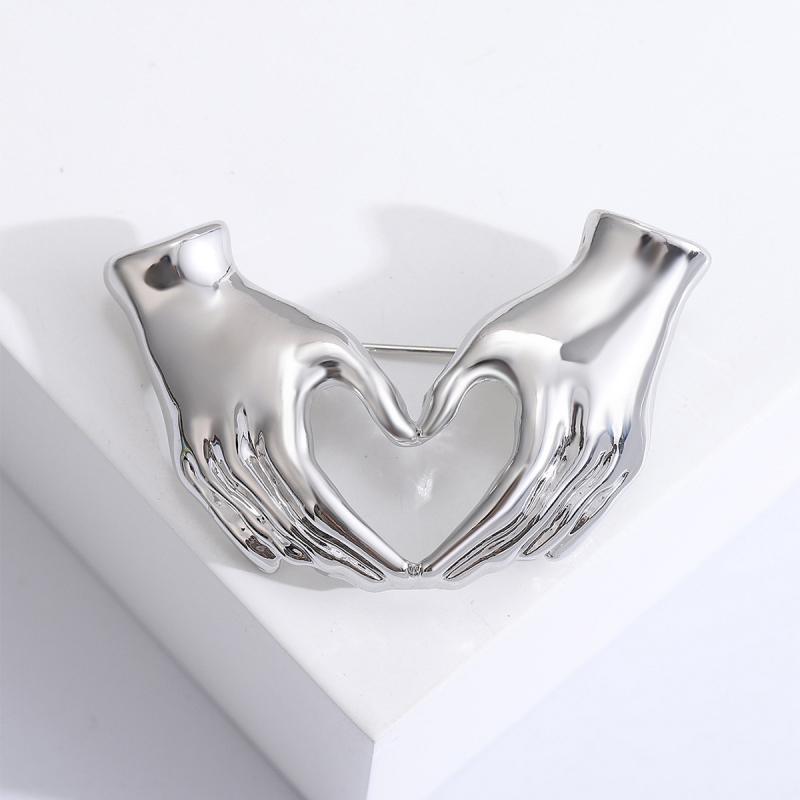 เข็มกลัดหัวใจสองมือรูปหัวใจเข็มกลัดท่าทางดั้งเดิมเครื่องประดับเสื้อสเวตเตอร์รูปหัวใจ