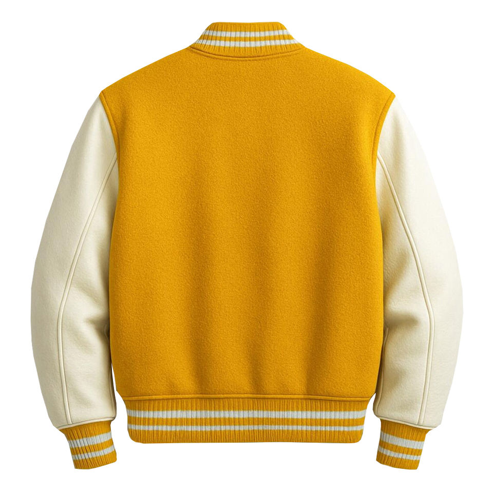 แจ็คเก็ตบอมเบอร์สำหรับผู้ชายเสื้อแจ็กเก็ตแบบลำลองแขนตั้งสีเหลืองและสีขาว360 GSM เสื้อแจ็คเก็ตบอมเบอร์ดีไซน์ล่าสุด