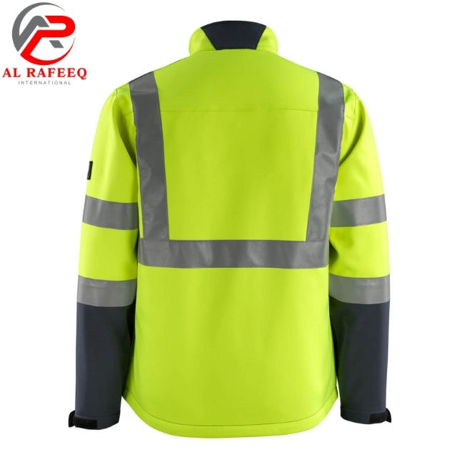 แจ็คเก็ตซอฟต์เชลล์กันน้ำรุ่นล่าสุดสำหรับผู้ชาย ดีไซน์ทันสมัย มองเห็นได้ชัดเจน ผลิตจากโพลีเอสเตอร์ เหมาะสำหรับงานด้านความปลอดภัย พร้อมโลโก้ที่ปรับแต่งได้