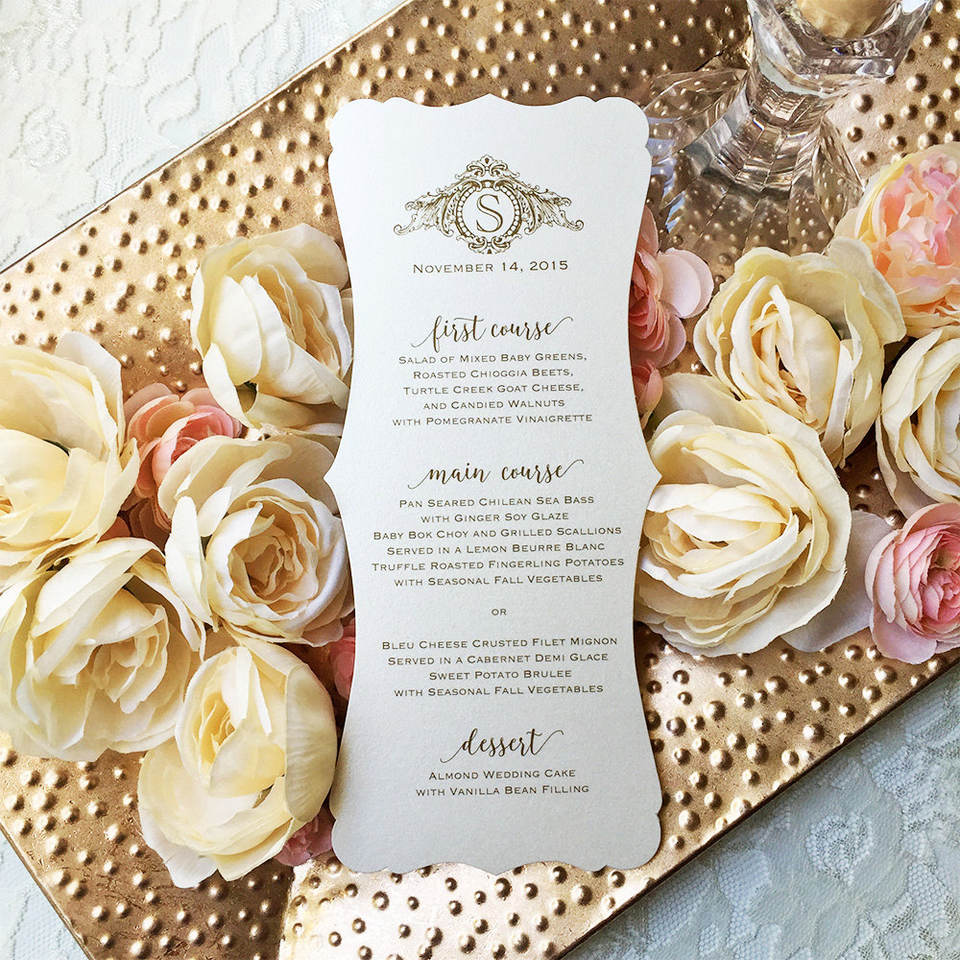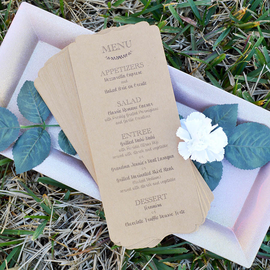 เมนูอาหารงานแต่งงานดีไซน์ล่าสุด กระดาษเมนูรูปทรงตามสั่งสำหรับงานปาร์ตี้ การ์ดเมนูกระดาษสำหรับงานแต่งงาน