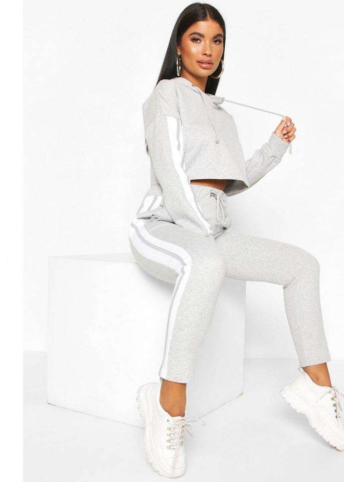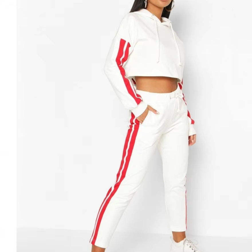 ชุดเซ็ตฮู้ดดี้ครอปท็อปแขนยาวดีไซน์ล่าสุด ขายดีประจำฤดูหนาว สำหรับผู้หญิง แบบสั่งทำได้ 2 ชิ้น ชุดวอร์มขายาว ด้านหน้า