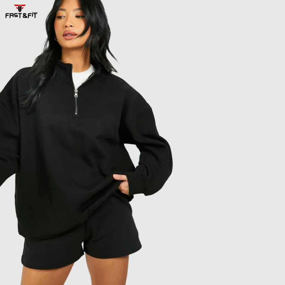 เสื้อสเวตเตอร์แบบสวมหัวสำหรับผู้หญิงตัวสั้นแบบมีซิปคอตตอน100% จัมเปอร์สำหรับฤดูหนาวดีไซน์ล่าสุด