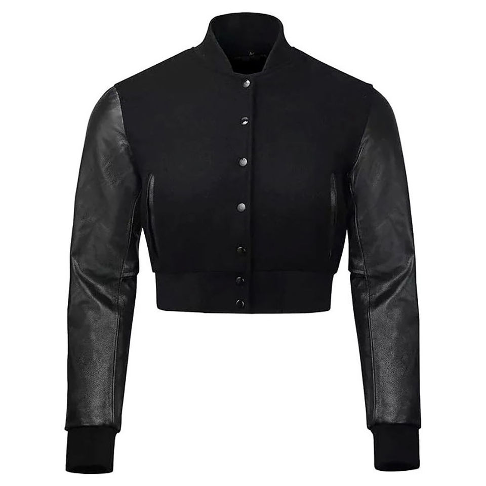เสื้อแจ็คเก็ตครอปท็อปแบบวาร์ซิตี้สำหรับผู้หญิง ดีไซน์ล่าสุด แฟชั่นทันสมัย คอตั้ง หลายสี สามารถปรับแต่งได้ สำหรับขายออนไลน์