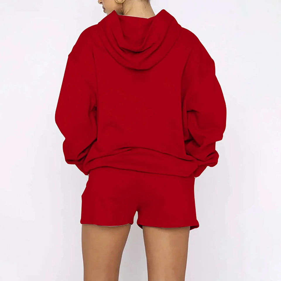 ชุดเสื้อฮู้ดและกางเกงขาสั้นผู้หญิง