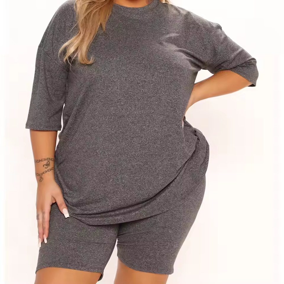 ชุดเสื้อยืด2ชิ้นกางเกงขี่จักรยานทรงเอวสูงขนาดใหญ่พิเศษสำหรับผู้หญิงเสื้อยืดกีฬาลำลองดีไซน์ล่าสุด