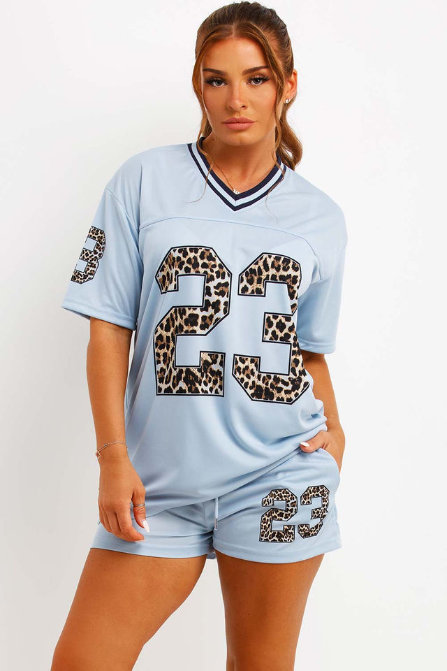 เสื้อฟุตบอลโอเวอร์ไซส์คอวีพิมพ์ลายเสือดาวพิมพ์ตัวเลขดีไซน์ล่าสุด