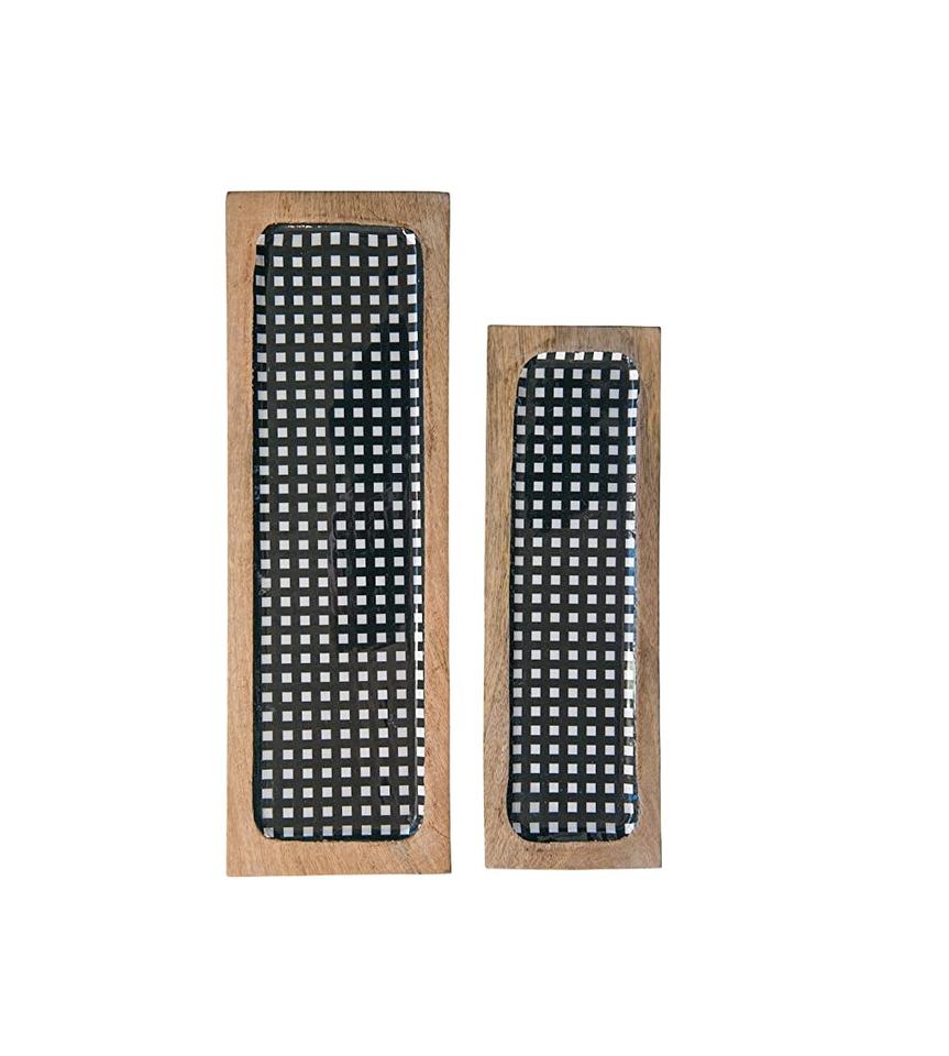 ถาดไม้พิมพ์ลายเคลือบไม้ถาดเสิร์ฟทรงรีถาดไม้พิมพ์ลาย MDF