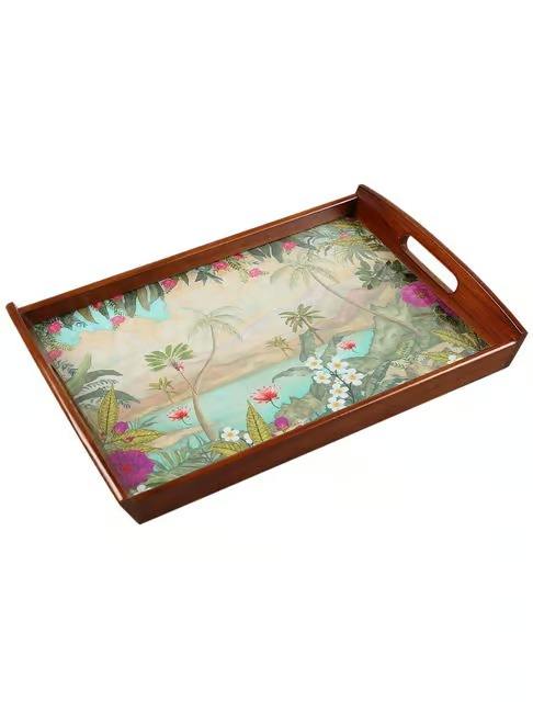 ถาดเสิร์ฟไม้เคลือบลายดอกไม้ ดีไซน์ใหม่ล่าสุด น้ำหนักเบา เหมาะสำหรับตกแต่งโต๊ะครัวสมัยใหม่ ใช้ในงานแต่งงาน หรือเทศกาลรอมฎอน